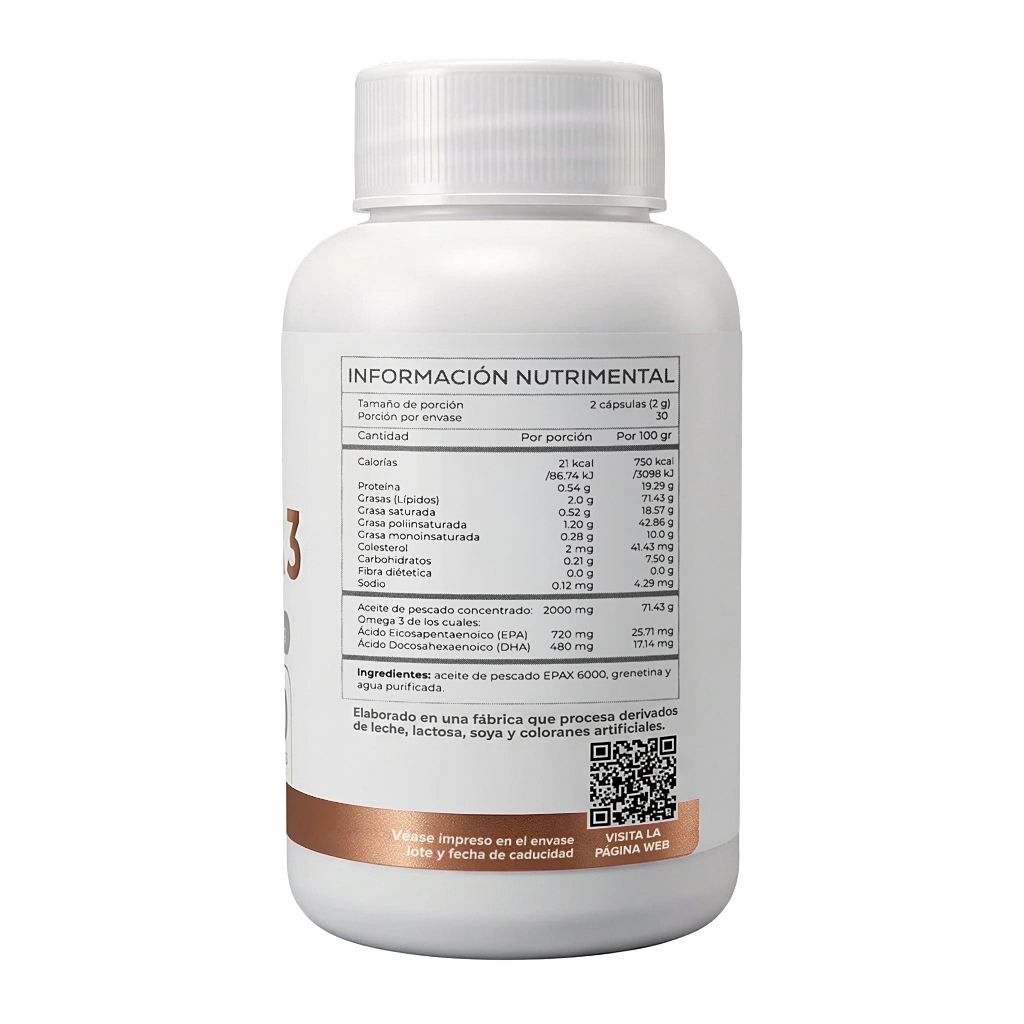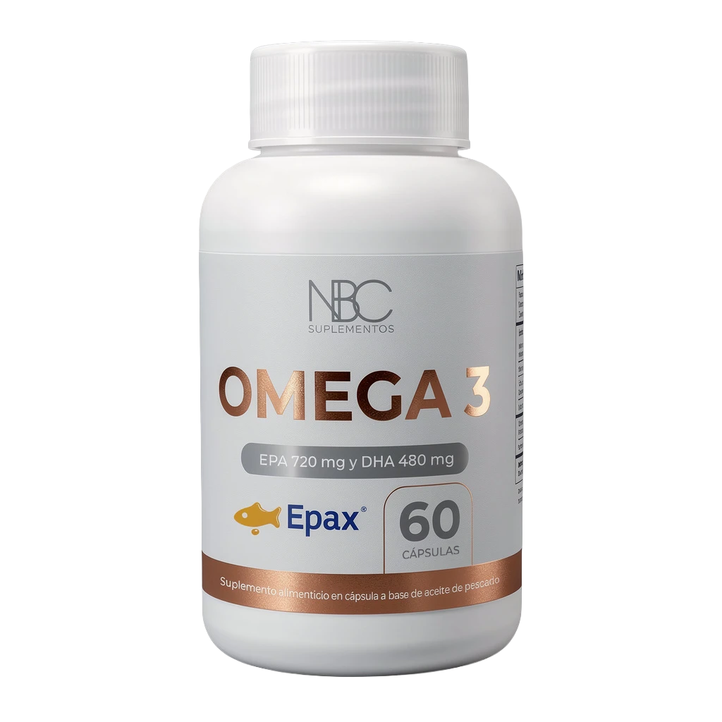 Nuestras cápsulas de Omega-3 de NBC Suplementos contienen formas biodisponibles de EPA y DHA (derivadas del aceite de pescado). Este formato está diseñado para ser integrado a la dieta diaria de forma práctica y constante, lo cual es fundamental para el aprovechamiento nutricional de los ácidos grasos esenciales.